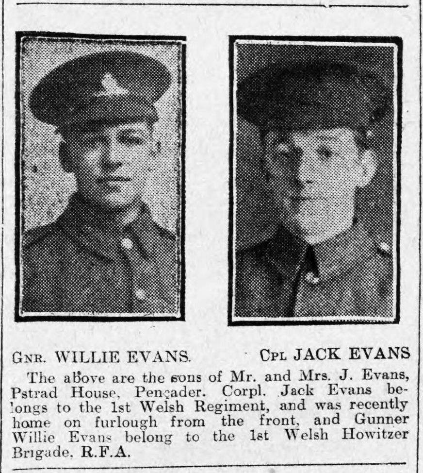 Born 25/1/1894, Llanfihangel Ar Arth, Carm. Parents - John & Rachel